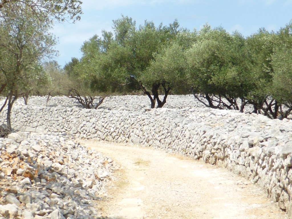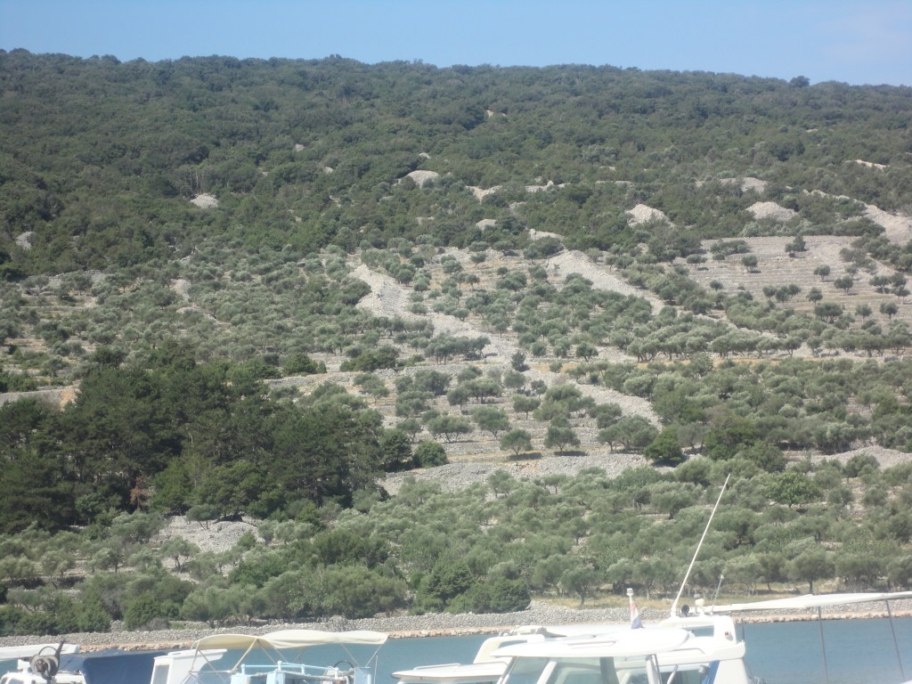 Terrassen und die architektonischen Formen der Olivenhaine auf Cres