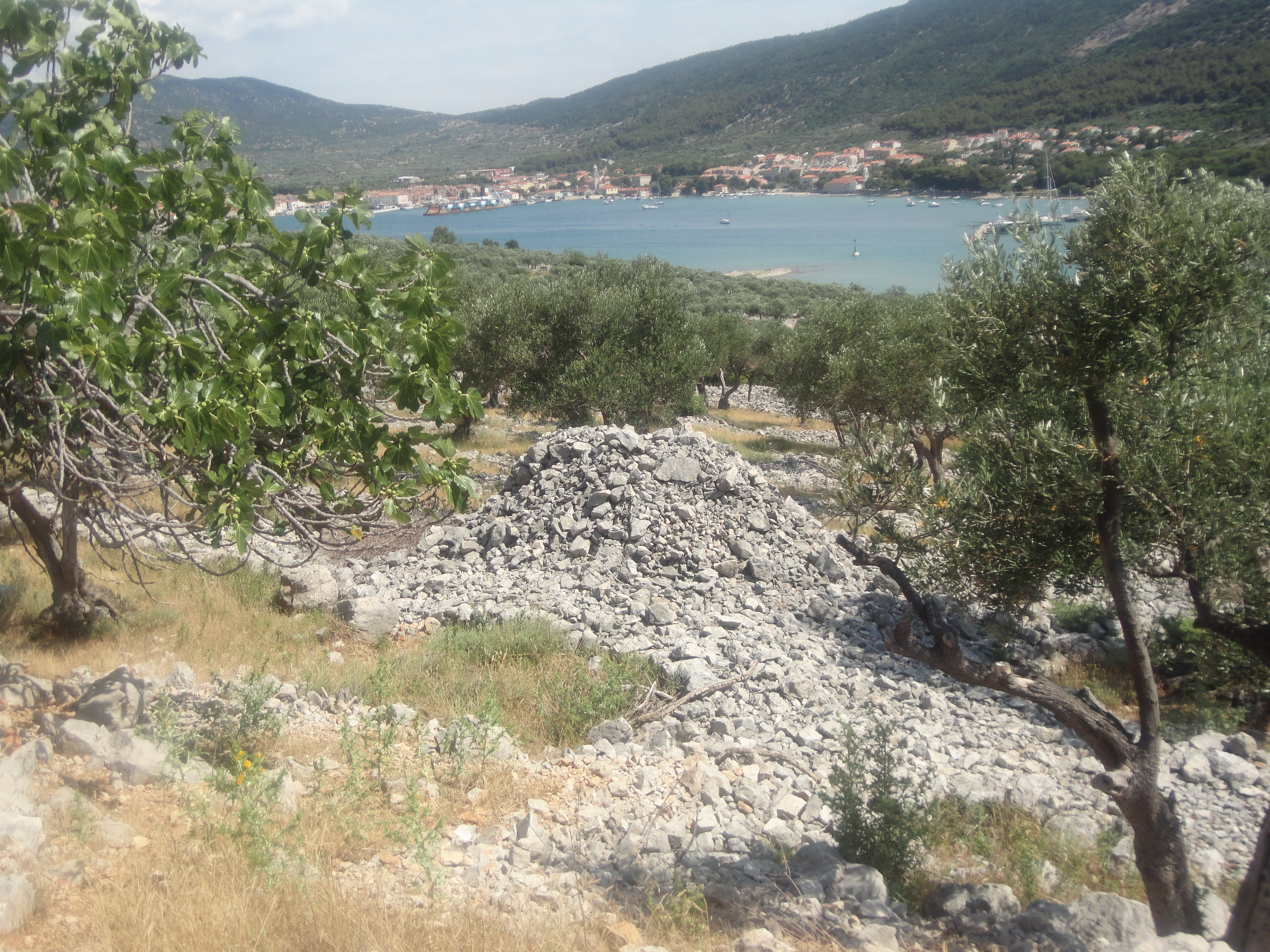 Nella citata pubblicazione del Cavallini viene allegato un rilevamento che il dott. Antonio Petris ed il perito Nicolò Bolmarcich hanno eseguito (nel 1900) su 15 ettari (differenti per estensione e natura del terreno) dei 1288 coltivati ad oliveto nei dintorni del centro cittadino. L’intensità di coltivazione risulta essere di c:a 249 piante per ettaro, per un totale 320.723 ulivi. Oltre a questi dati di notevole importanza, ciò che attrae maggiormente la nostra attenzione sono le proporzioni fra coltivazione e pietra asportata. Dei 1288 ettari, 13/40 (418,40 ettari) sono occupati da pietre in forma di: muri di confine, terrazze di sostegno in monte o di semplice divisione in piano-barbacani- scarpe e controscarpe, ammassi di pietre rimosse (menik) viottoli, ecc. I 5/40 (161 ettari) della stessa superficie totale sono coltivati ma a scarsa produttività, mentre i restanti 22/40 (708,40 ettari) occupati da ulivi. Che il 48% della superficie osservata sia ricoperta da pietre ricavate dal terreno stesso da un’indicazione della mole del lavoro impiegato.