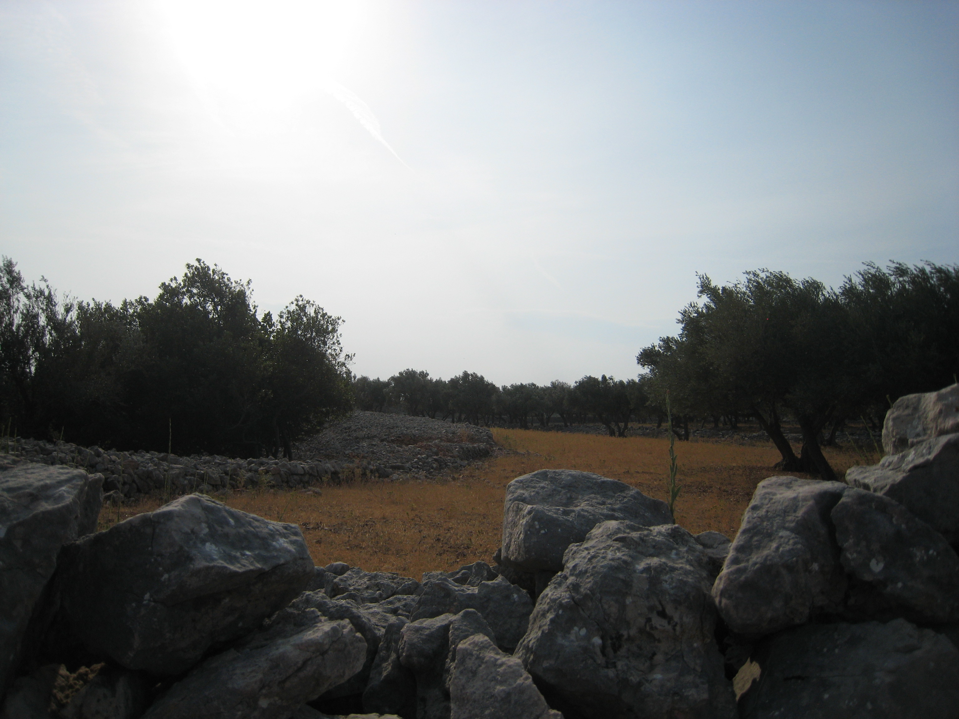 Per periodi storici più recenti non si trovano documentazioni dirette o notizie specifiche che riguardano i terrazzamenti; dobbiamo ricorrere a quanto riportato con riferimento all’introduzione e all’ incremento di diverse attività economiche e colture, quali indicatori della costruzione dei manufatti in pietra. Nei primi Statuti datati al 1300, che riportano usanze ancora più antiche, la pastorizia viene spesso nominata, ed a volte qualche muro che serva a dar ombra alle pecore, ma nulla che riguardi il terrazzamento a scopo agricolo. Petrisso de Petris riceve in data 4 febbraio 1504 il permesso di “redure desmesteghi” alcuni olivi selvatici nella Stanzia di S.Biagio e vista la buona riuscita di questa iniziativa alcuni anni più tardi (1508) l’affittanza venne estesa ad altre venti piante. Nel 1550 venne fondato il Fondaco dell’olio per far fronte alla grande carestia del prodotto. Queste notizie fanno capire che “la coltura olivaria nei dintorni della città di Cherso non avesse ancora presa quella estensione che ebbe di poi”(C.Hugues in Cavallini “Lettera agli agricoltori di Cherso”). Nei primi decenni del XVII secolo Venezia decise di incrementare la produzione olearia ed estendeva la coltura alle regioni dell’Istria e della Dalmazia, per proprio interesse economico e per compensare la scarsità del prodotto proveniente in gran parte dalla Puglia. Dalla diretta consultazione dei libri del fontico ci aspettavamo una registrazione esauriente e dettagliata della produzione annua; al contrario sono state notate solo sporadiche vendite ed acquisti di limitate quantità d’olio nel priodo dei 21 anni (1616-1637) da noi osservato.