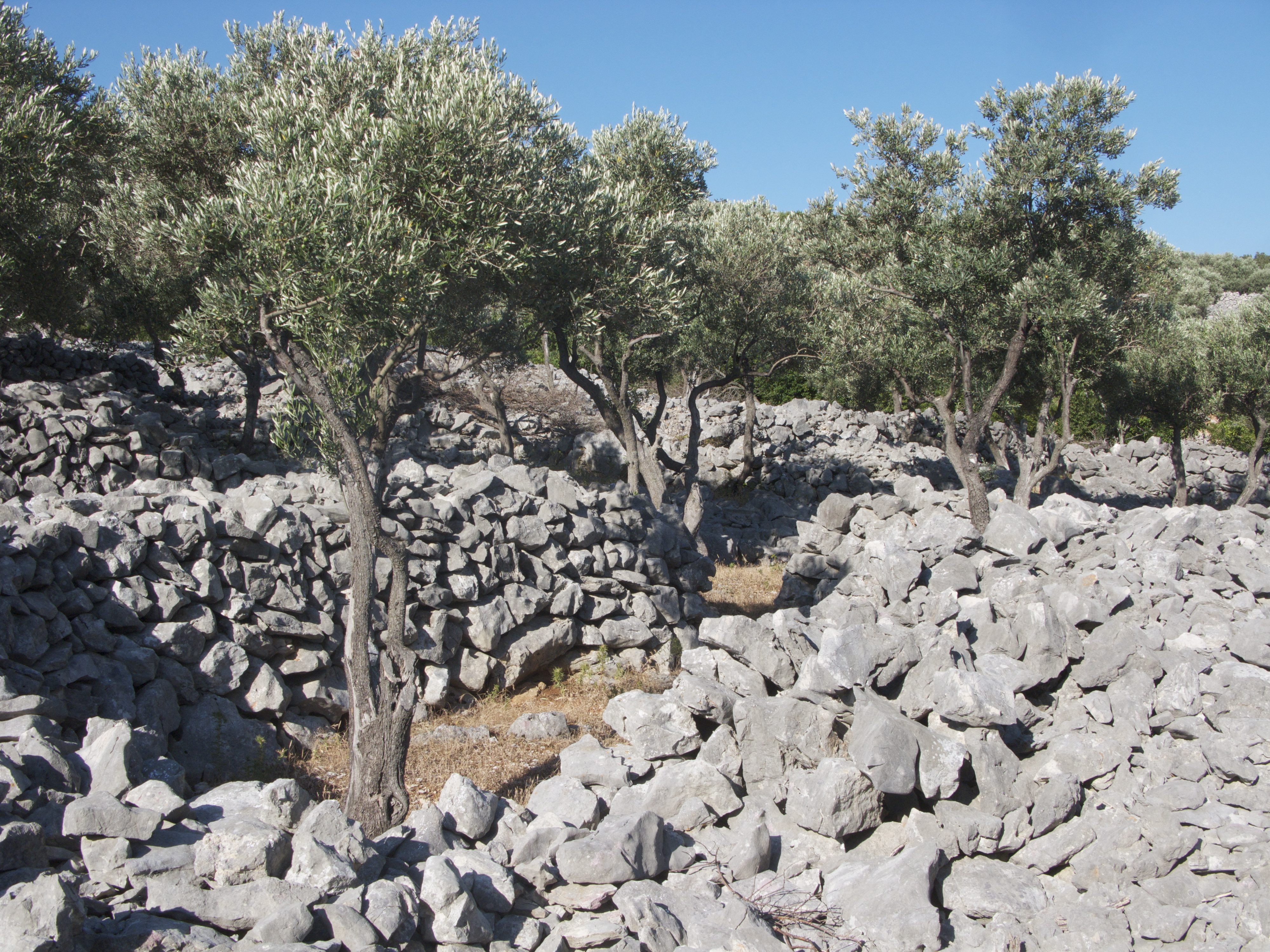 Cres har några unika egenskaper som skiljer den från andra ställen längs östra Medelhavskusten, både i utnyttjandet av marken och i byggandet av terrasser och gärdsgårdar. På vår ö har man varit tvungen att befria och flytta ett kalkstenslager för att komma fram till odlingsbar mark för att därefter med alla extraherade stenar kunna bilda de strukturer som i kvantitet, uppfinningsrikedom och mängd arbete är typiska för Cres. I andra geografiska områden i östra Medelhavet – som beskrivits i olika verk – har de stenar som avlägsnats inte i första hand använts för att befria jorden från ett kalkstenslager utan för att bättre utnyttja nivåskillnader och skydda miljön.